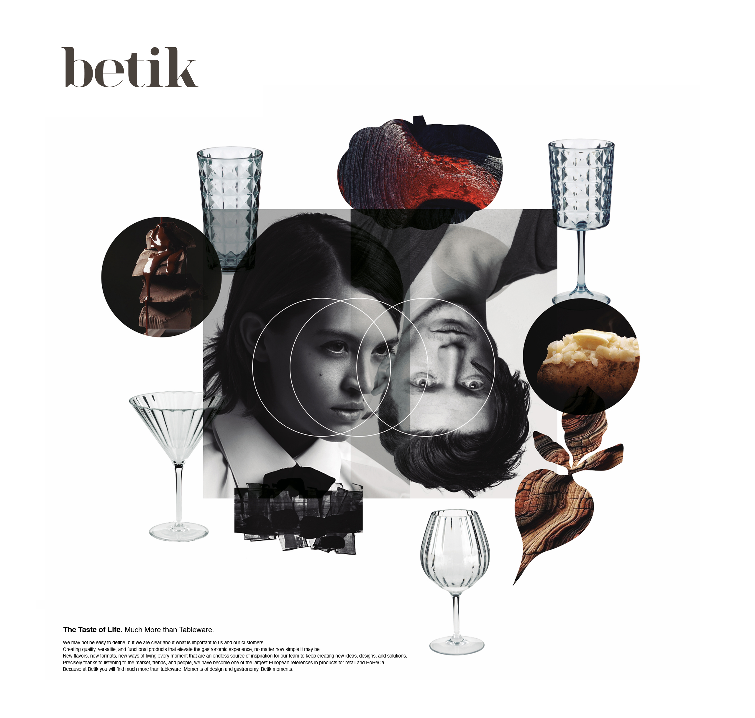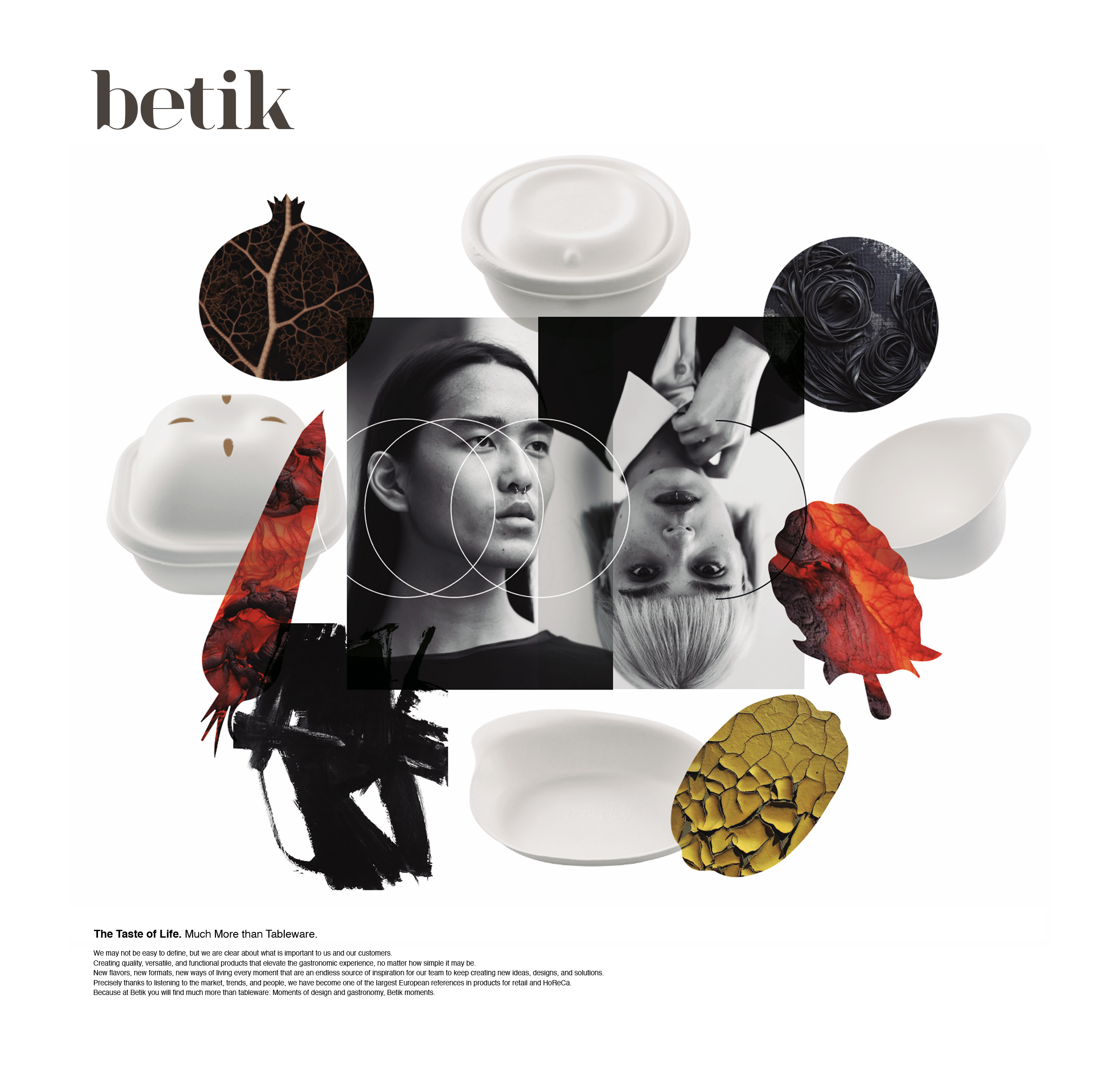 Re-Styling de imagen y posicionamiento credo para Betik. Sabor a Vida. Mucho Más que Vajillas. Betik-rentzako sortutako irudien Re-styling eta posizionamendua. Bizitzaren Zaporea. Mahai-tresnak baino askoz gehiago. Image re-styling and positioning created for Betik. The Taste of Life. Much More than Tableware.
